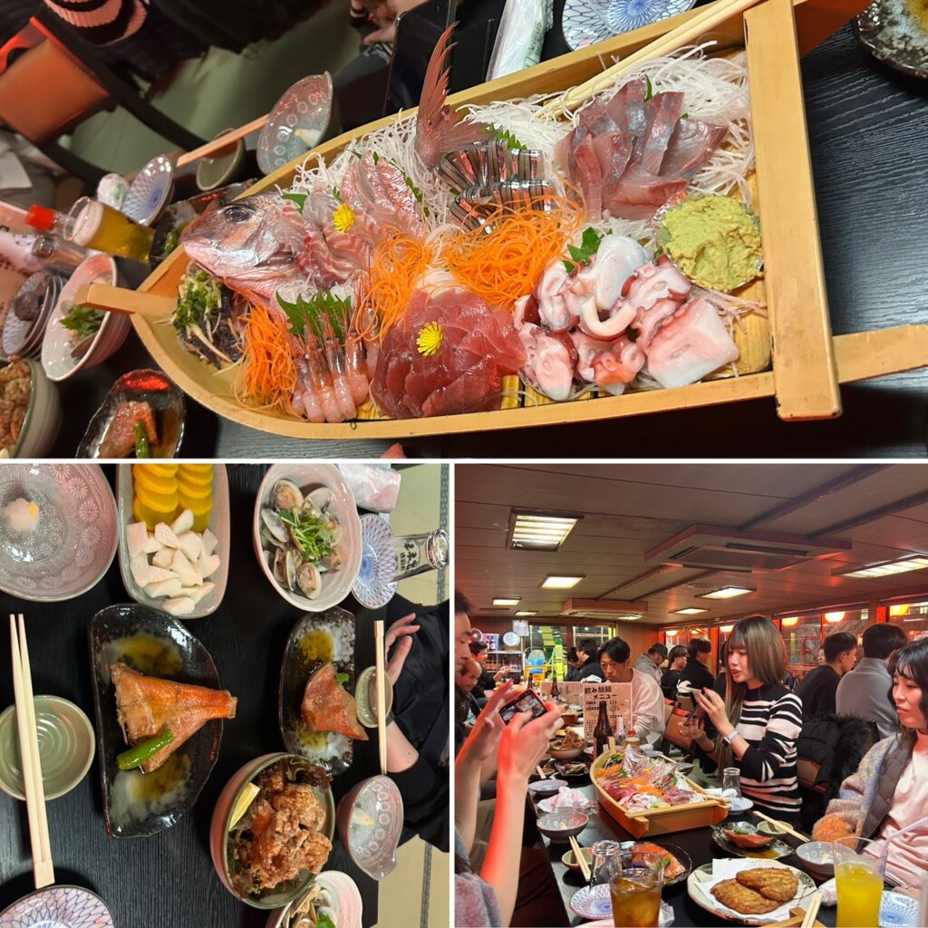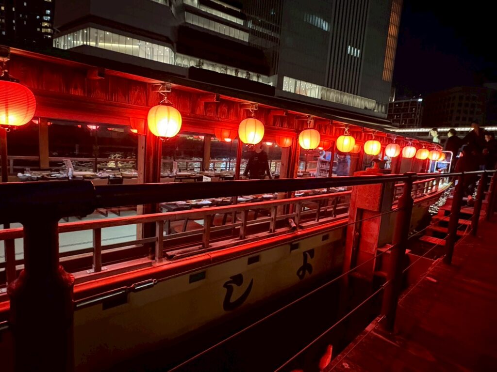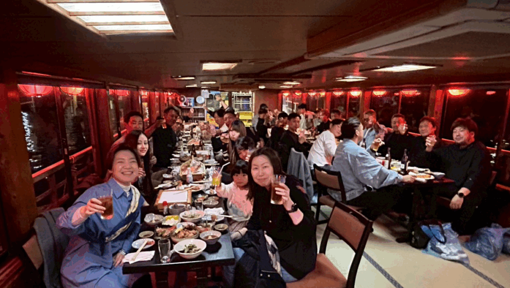 夜ごはんは屋形船で夜景を眺めながらの懇親会